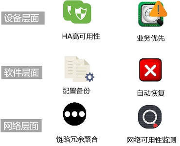 核心設(shè)備、匯聚設(shè)備全采用雙機(jī)部署,其鏈路均采用雙鏈路架構(gòu)。